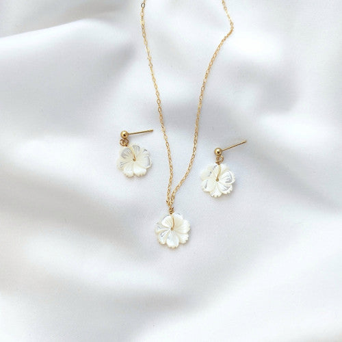 V nabídce najdete také náušnice s perleťovými květy do setu.