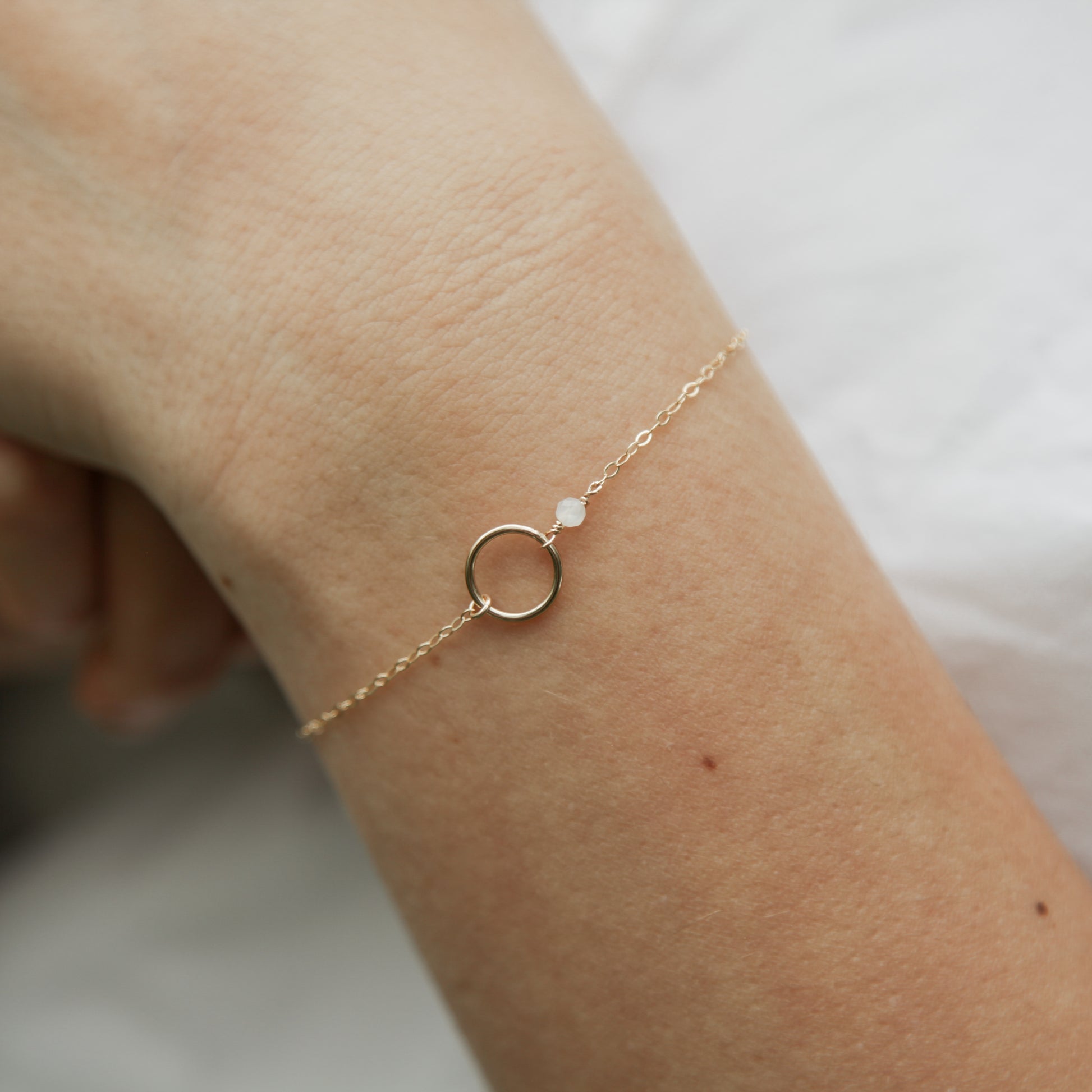 Jemný náramek s malým karma kroužkem a broušeným měsíčním kamenem.