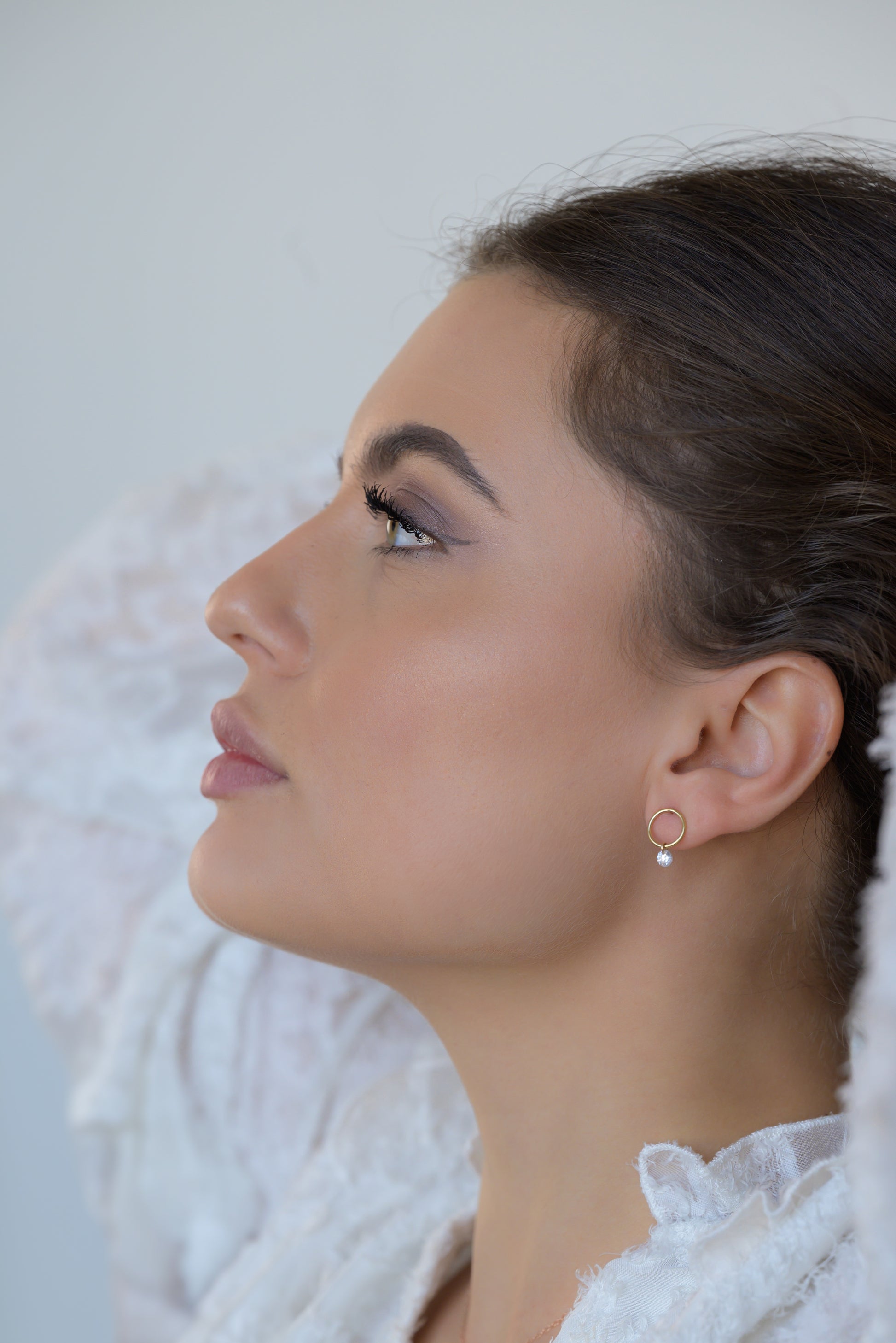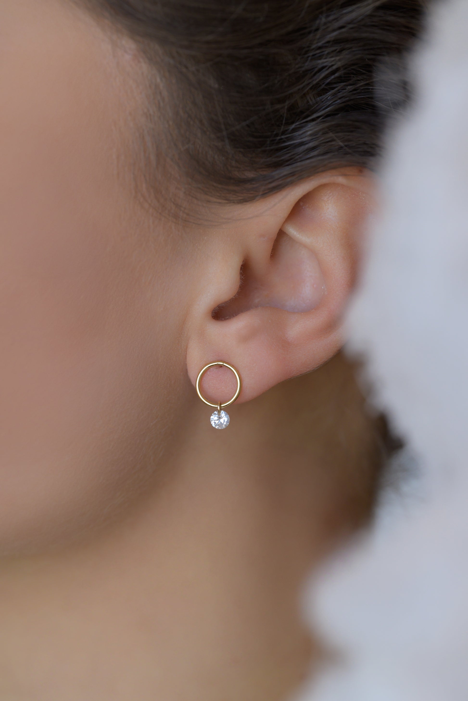 Puzetkové náušnice s karma kroužky a kubickými zirkony (AAA) ve zlatém provedení. Něžný, minimalistický doplněk.