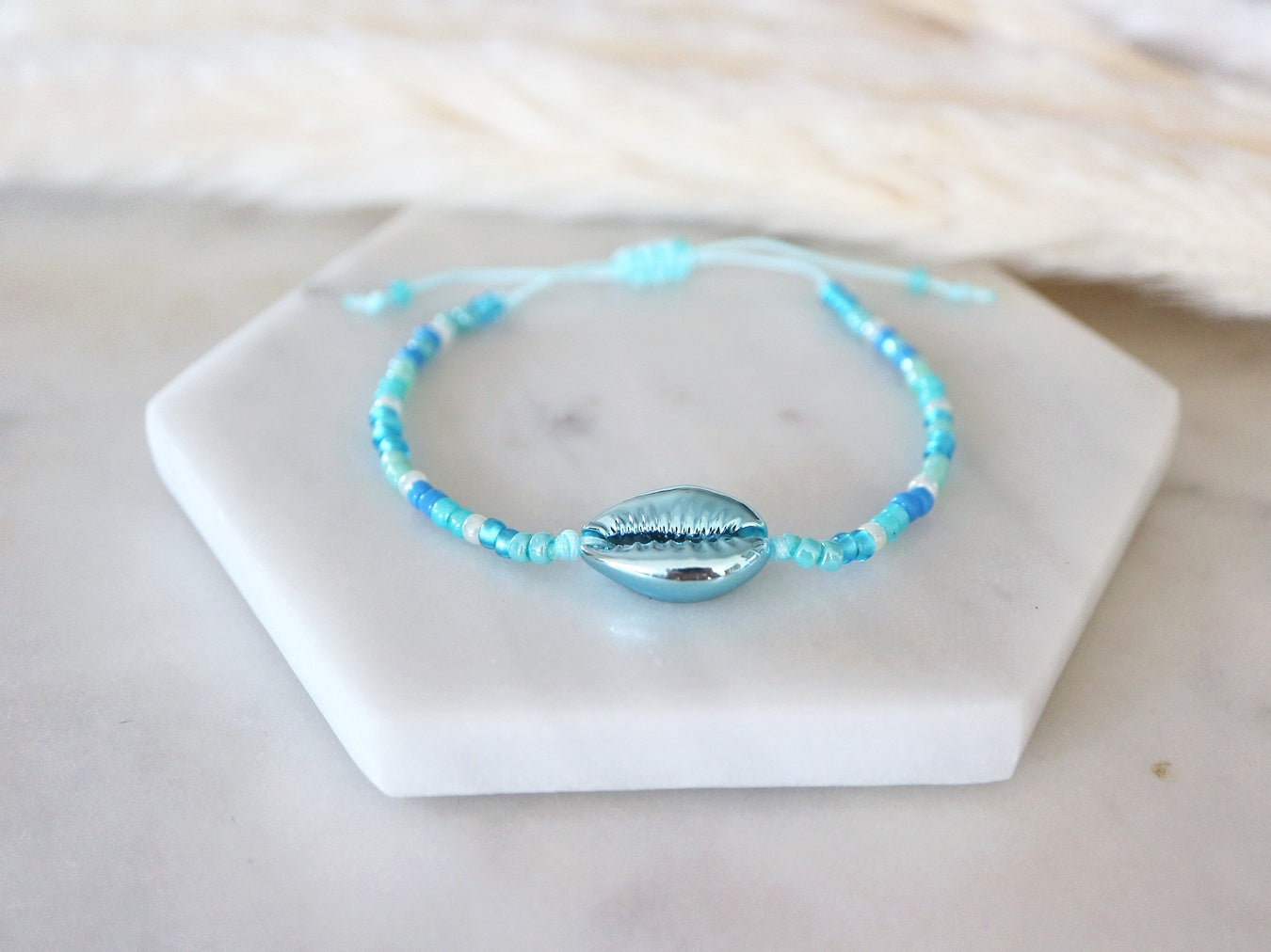 Velikost náramku je nastavitelná díky zdrhovacímu uzlíku. S volnými konci šňůrek.