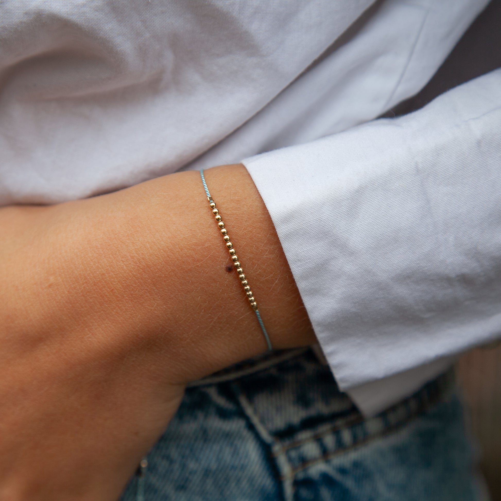 Všechny kovové komponenty na náramcích jsou z 14 kt gold filled mosazi, jde o nejodolnější zlacení, díky němuž jsou náramky vhodné pro každodenní nošení.
