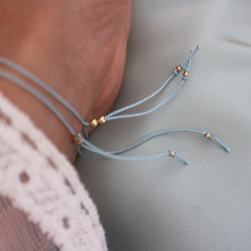 Velikost náramku je nastavitelná díky dvěma korálkům, univerzální dámská s volnými konci šňůrek.