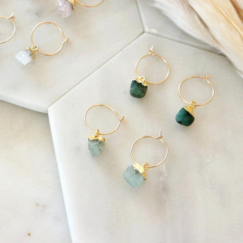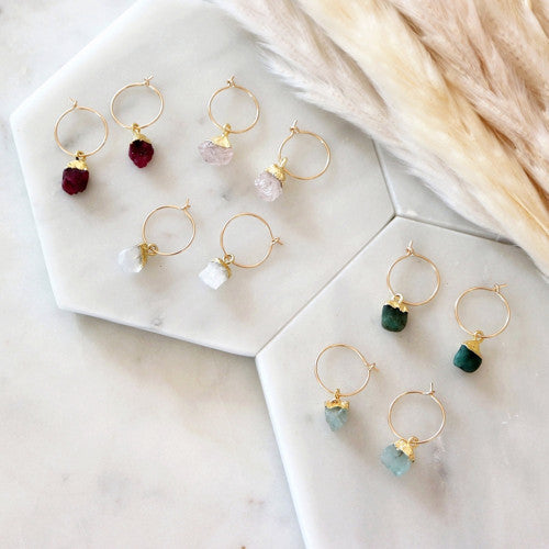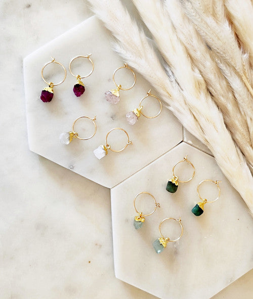 Úzké kruhy se surovými kameny různých barev: rubín (rudofialová), růženín (světle růžová), měsíční kámen (čirá až bílá), smaragd (zelená), nebo akvamarín (světle modrá až modrozelená) - vyprodán.