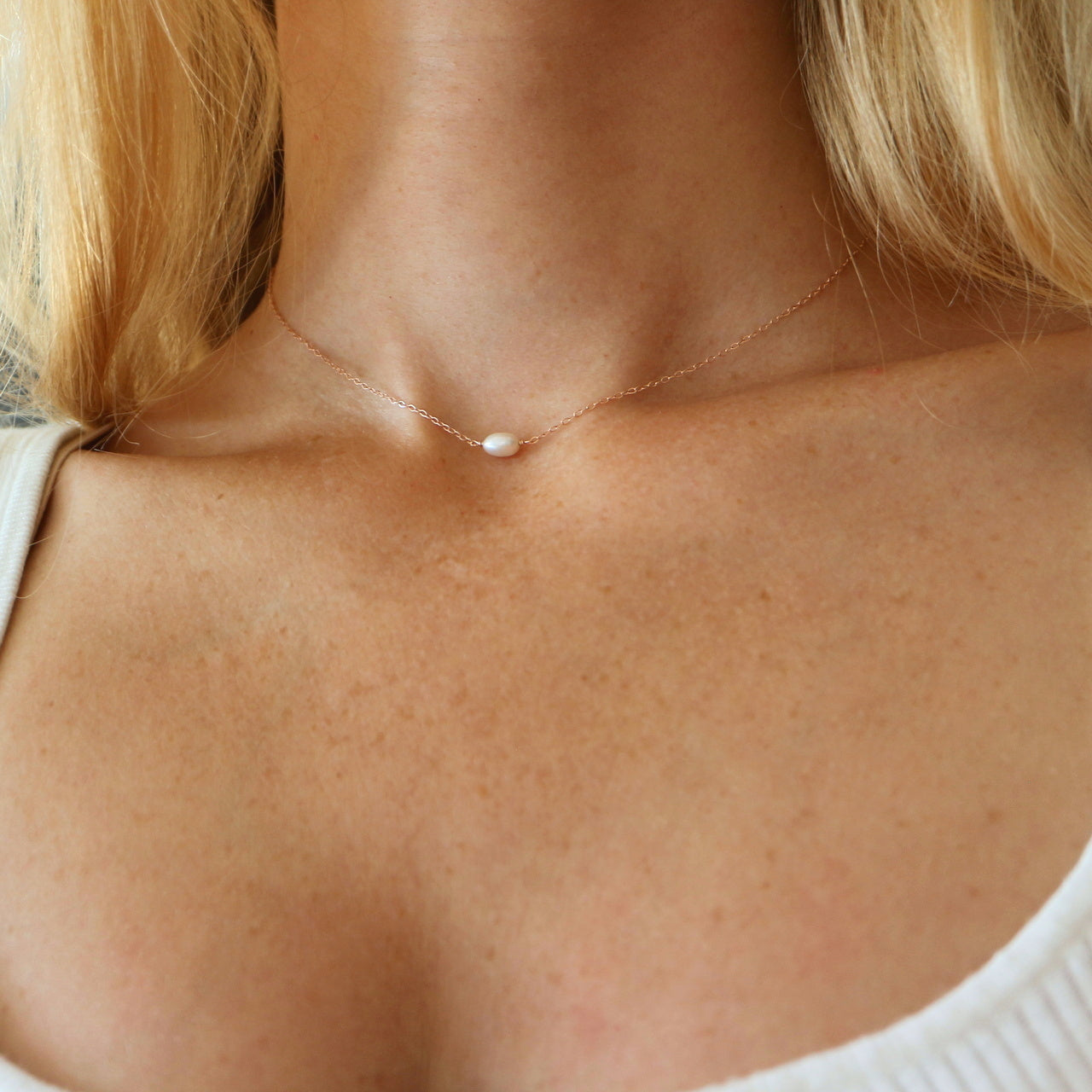 Stejně jako jméno Kate, tak i tento řetízek značí čistotu a mravnost. Jemný řetízek s oválnou sladkovodní perlou uprostřed. Řetízek je plněný růžovým zlatem (rose gold filled). Cena je uvedena za krátký řetízek zcela nahoře.