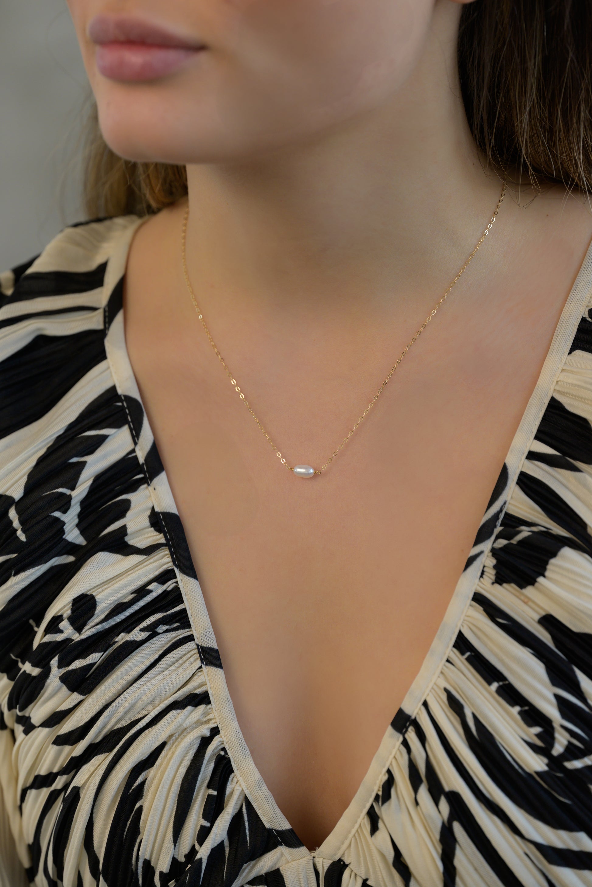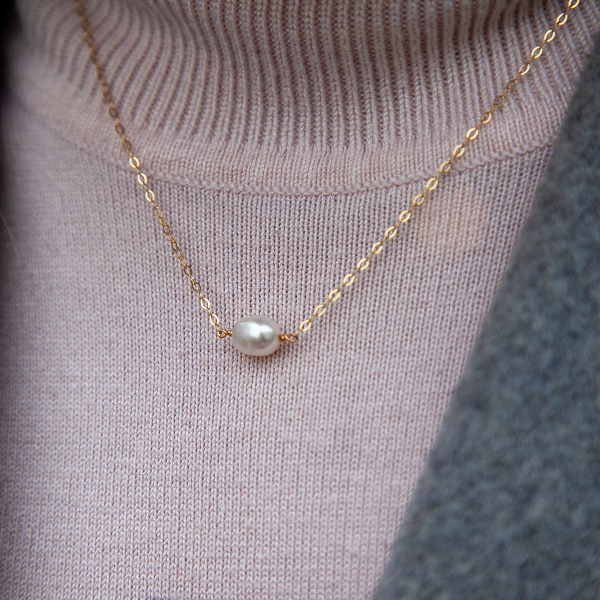 Stejně jako jméno Kate, tak i tento řetízek značí čistotu a mravnost. Jemný řetízek s oválnou sladkovodní perlou uprostřed. Řetízek je plněný zlatem (gold filled). Cena je uvedena za krátký řetízek zcela nahoře.