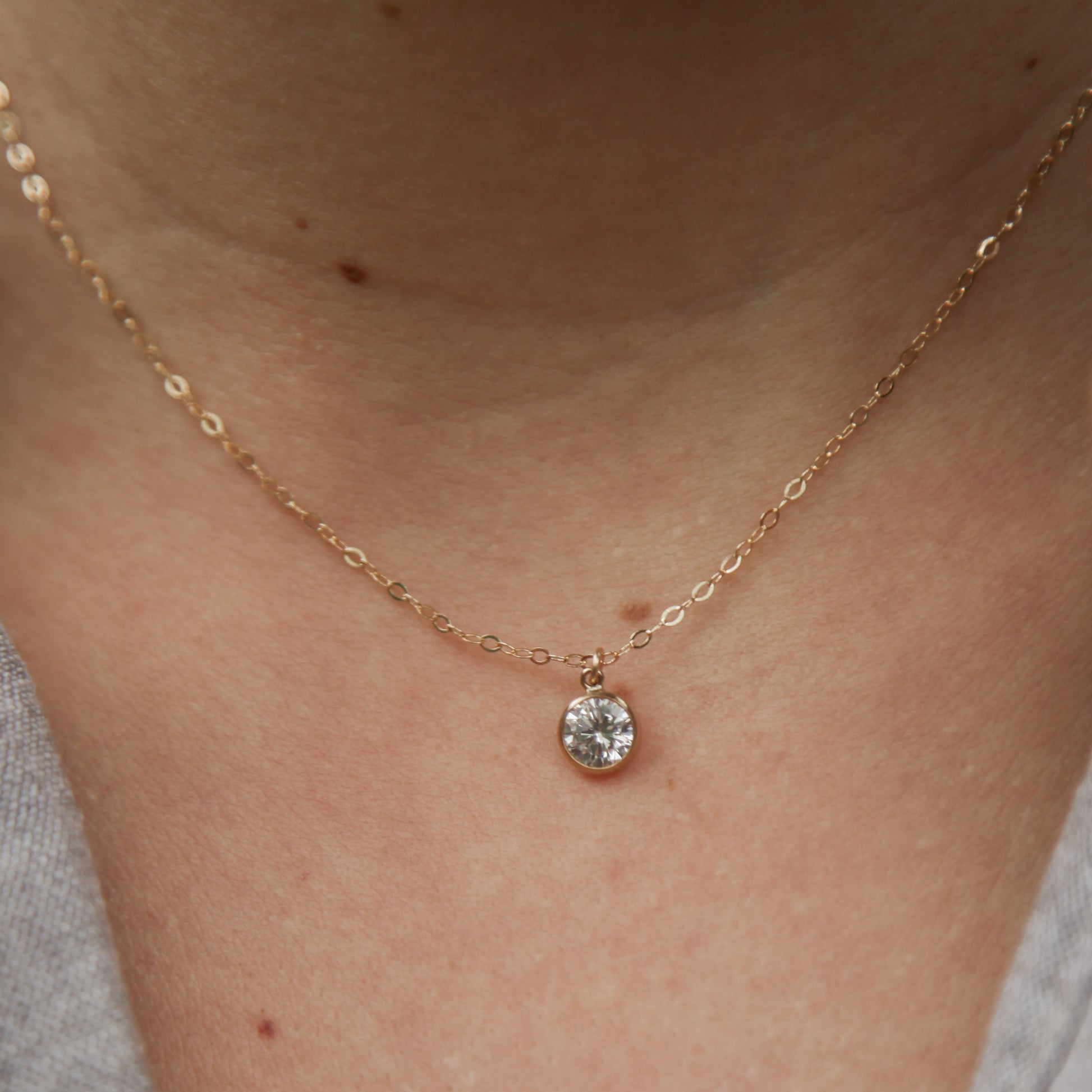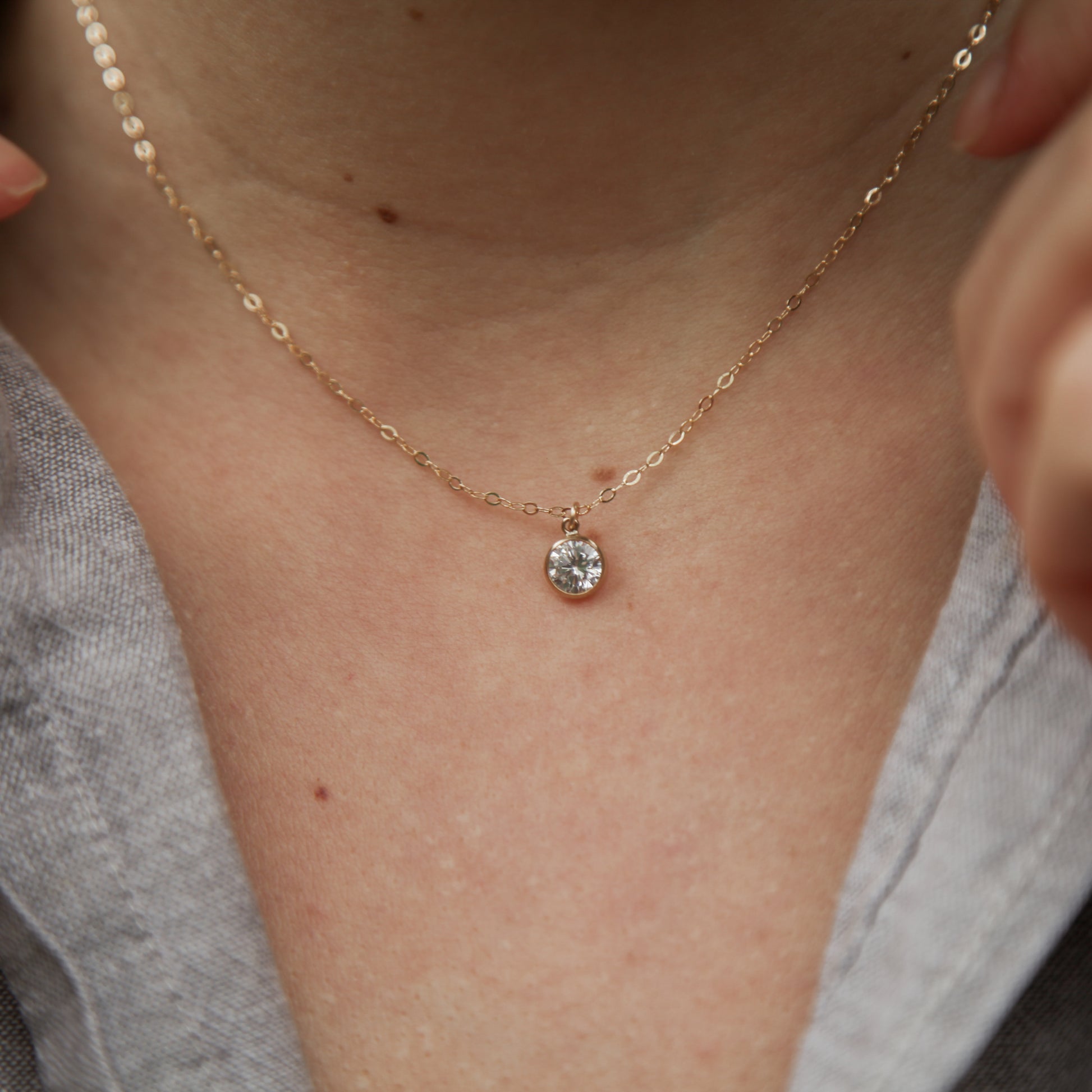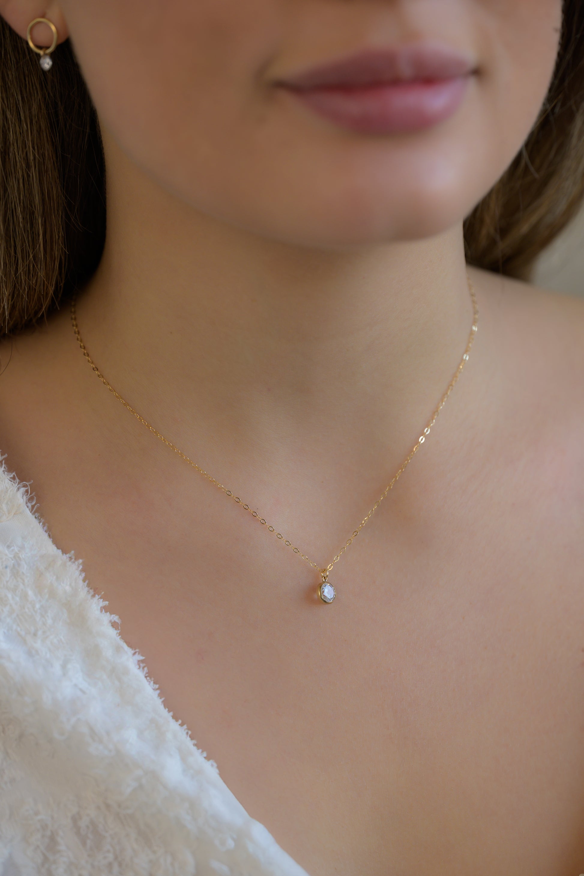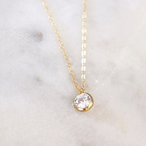 Jemný řetízek s bílým zirkonem. Něžný, minimalistický šperk. Nejodolnější zlacení 14 kt "gold filled", díky němuž je řetízek vhodný i pro každodenní nošení.