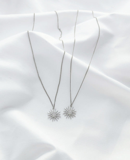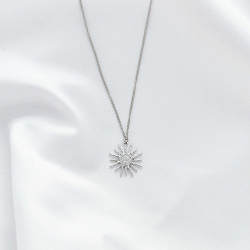 Slunce vykládané kubickými zirkony zavěšené na jemném řetízku z chirurgické oceli.
