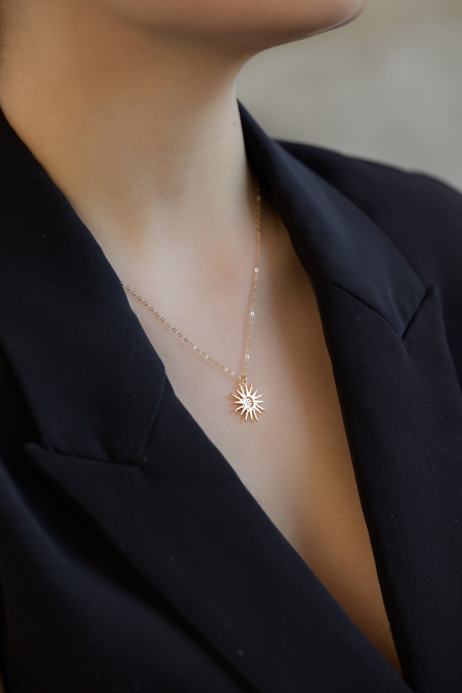 Řetízek se sluníčkem vykládaným zirkony. Jemný, minimalistický šperk. Řetízek je plněný 14 kt zlatem (gold filled).