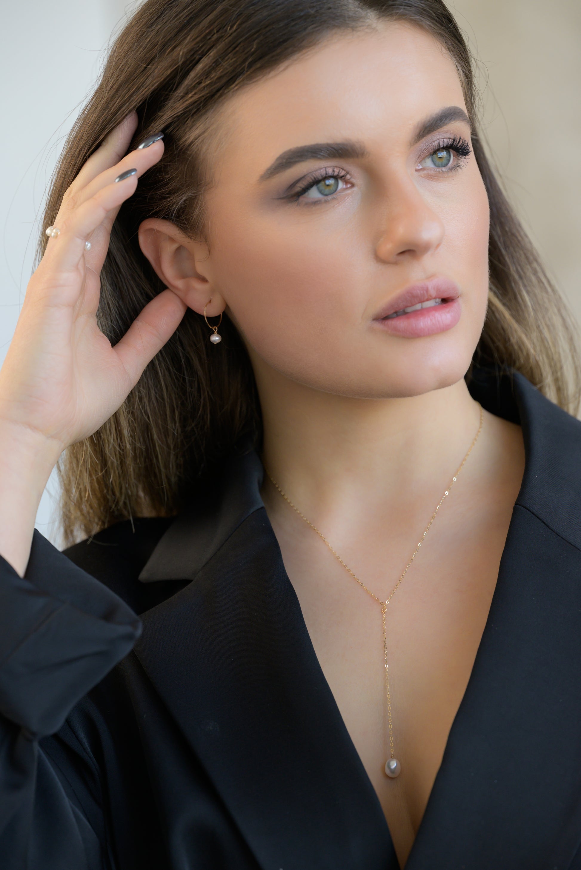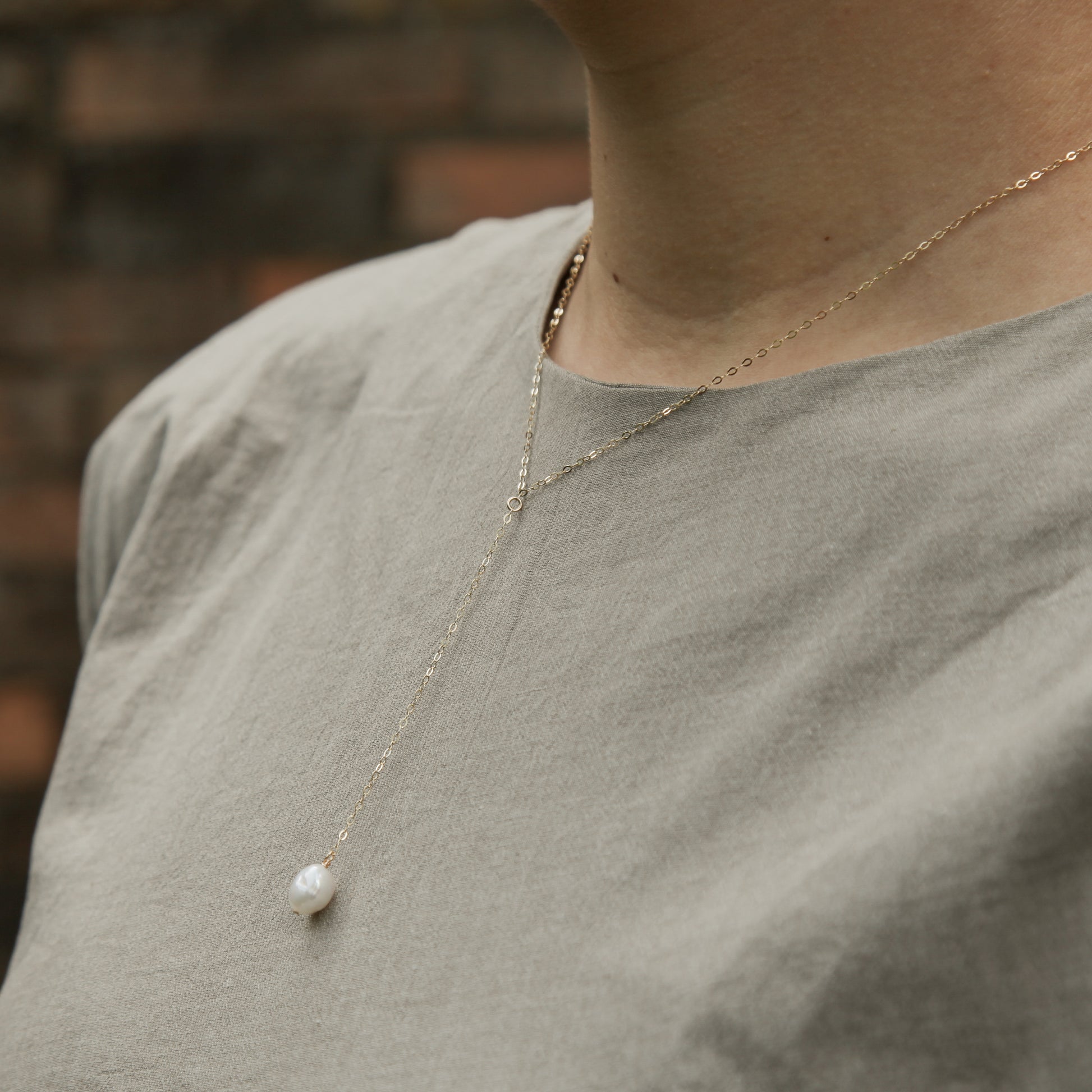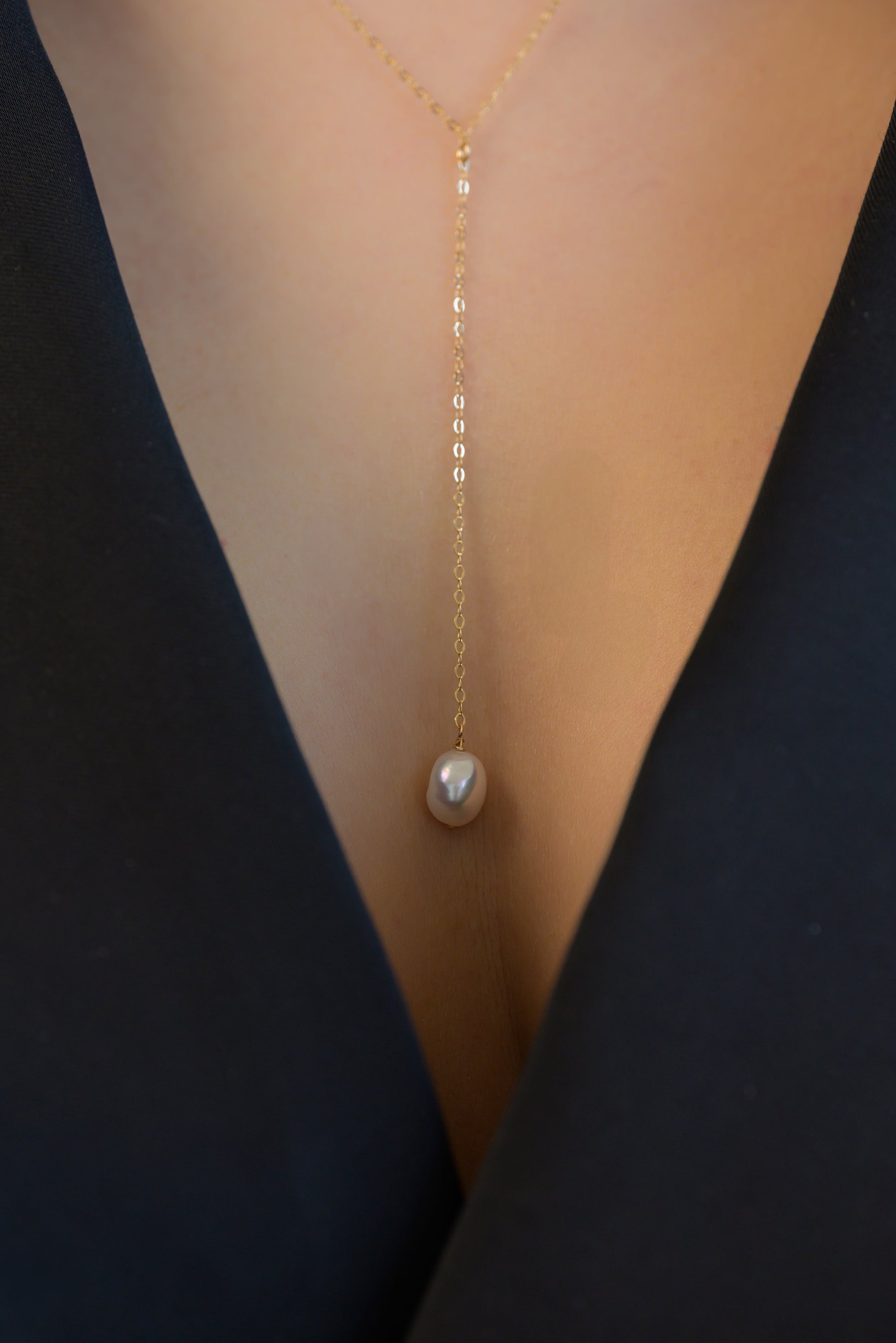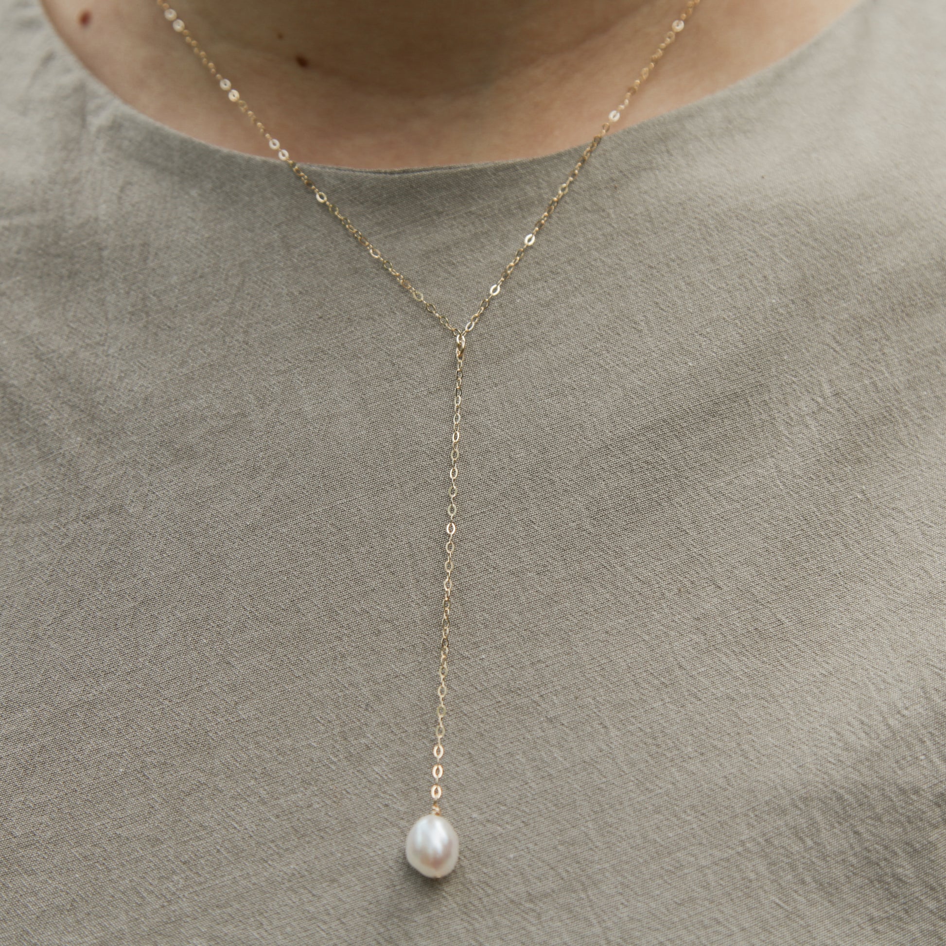 Jemný řetízek ve tvaru Y s oválnou sladkovodní perlou. Minimalistický, rafinovaný doplněk. Díky použité metodě zlacení je řetízek vhodný pro každodenní nošení.