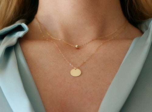 Dva jemné řetízky s korálkem a mincí, které můžete nosit samostatně nebo vrstvit. Minimalistické šperky na každodenní nošení.