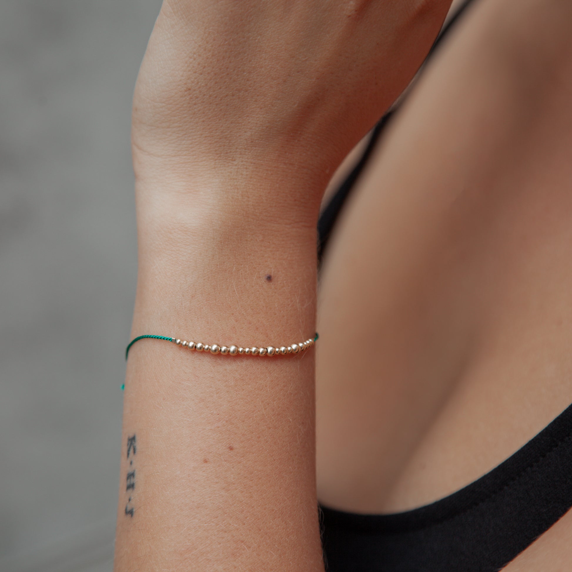 Všechny kovové komponenty na náramcích jsou z 14 kt gold filled mosazi. Jde o nejodolnější zlacení, díky němuž jsou náramky vhodné i ke každodennímu nošení.