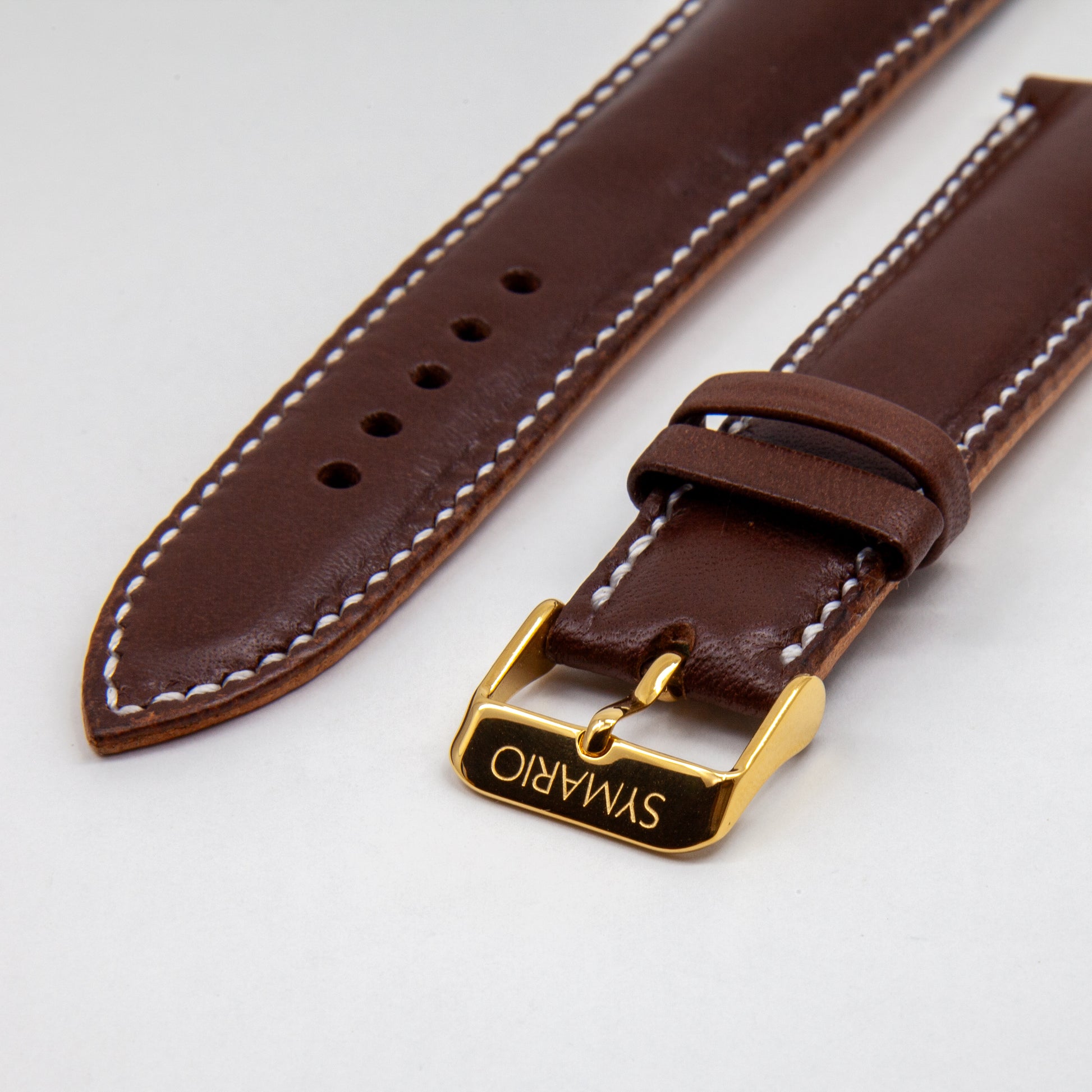 K výrobě hodinkových pásků se používá nejkvalitnější třísločiněnná kůže, která bude celý život pracovat a získávat bohatou patinu. Pásek má v některých místech až čtyři vrstvy usně a je celý ručně obšitý sedlářským stehem.